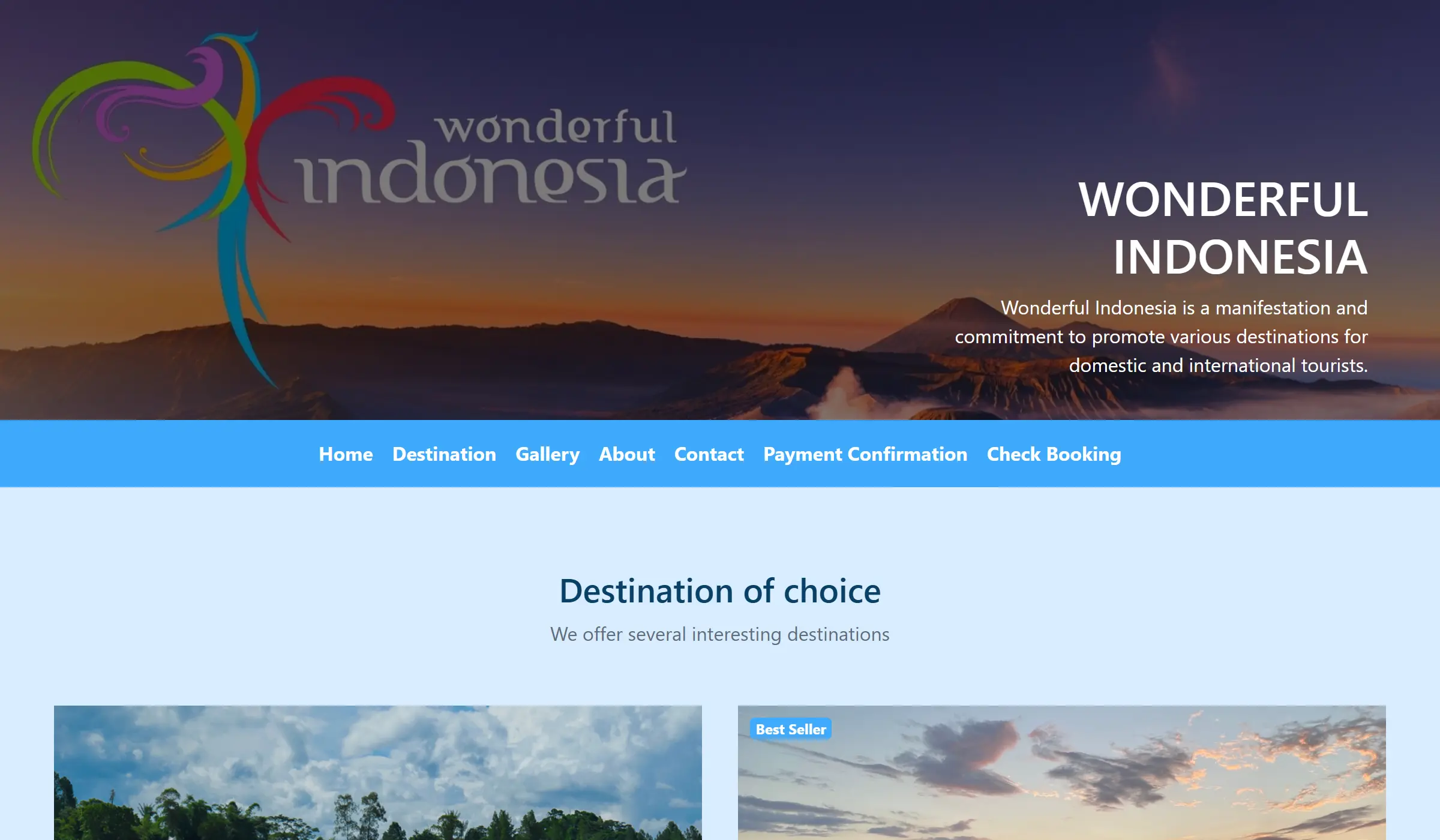 Wonderful Indonesia is a web-based application that provides various information and services related to tourist destinations, including reservations, payment confirmations, and booking checks. This application is built using the native PHP programming language.